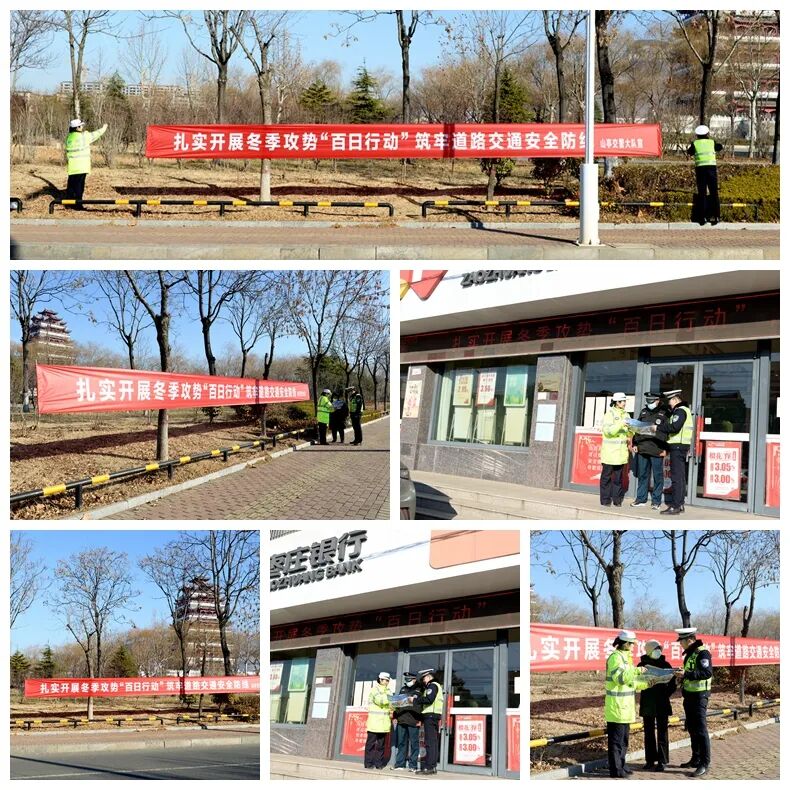 为进一步提高广大群众的交通安全意识,枣庄交警结合道路交通安全冬季攻势“百日行动”,借助“亮屏行动”,发挥辖区LED显示屏传播效应,组织民警在辖区张贴宣传海报、发放宣传单页,营造浓厚的宣传氛围。