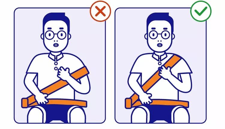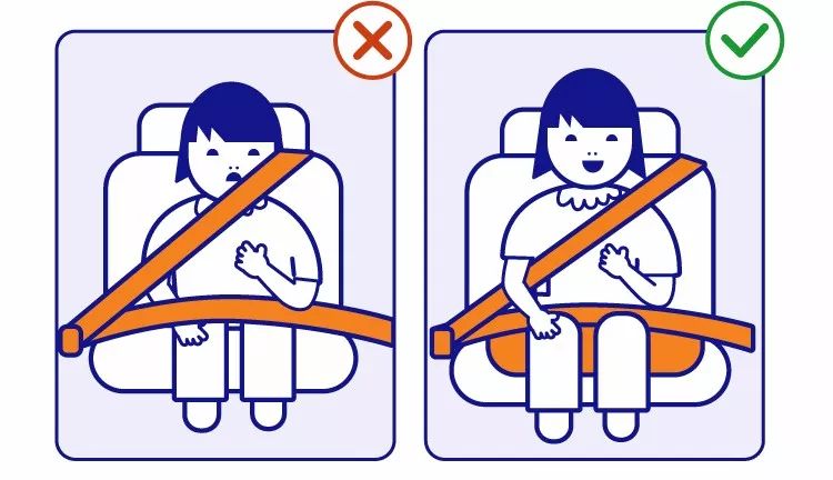 安全带跨过儿童的肩膀,斜对角贴胸而过;腰带应该跨过大腿根部而不是小孩的腹部,这样可以避免勒伤儿童的腹部;如果儿童身高不足,必须配合使用增高坐垫或者增高座椅抬高他们的身体。