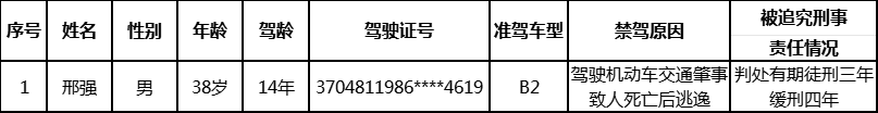 为进一步消除道路交通安全隐患,警示广大机动车驾驶人以此为鉴,安全守法出行。近日,枣庄交警向社会公开发布今年第一批终生禁驾名单,1人“榜上有名”。