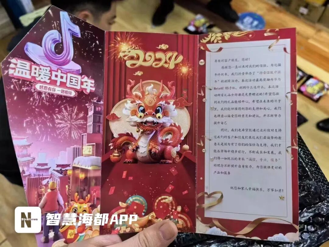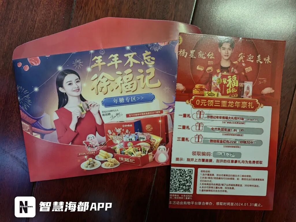“袋子很薄,地址是从济南寄过来的,我当时就想最近也没从济南买过啥东西啊!”林女士打开一看,袋子里是一个信封,写着硕大的“年年不忘 徐福记”“感恩有你”。拆开后,里头还有一张刮刮乐,写着“0元领三重龙年豪礼”,下方提示:“刮开上方覆盖膜,刮开的任意豪礼均为免费领取。”