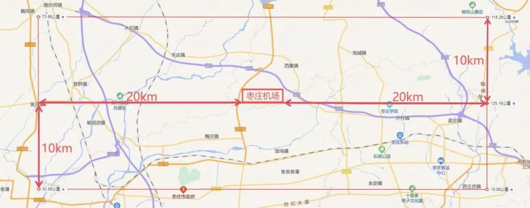 枣庄翼云机场跑道中心线两侧各10公里、跑道端外20公里以内的区域,主要涉及枣庄市28个、济宁市1个乡镇行政区域,范围如下:滕州市羊庄镇、木石镇、柴胡店镇、官桥镇、张汪镇、鲍沟镇;薛城区常庄街道、临城街道、新城街道、陶庄镇、邹坞镇;高新区兴仁街道、张范街道、兴城街道;市中区光明路街道、文化路街道、中心街街道、龙山路街道、矿区街道、垎塔埠街道、永安镇、西王庄镇、齐村镇、孟庄镇、税郭镇;山亭区西集镇、凫城镇、北庄镇以及济宁市微山县夏镇街道。