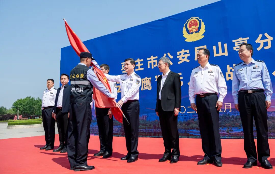 朱清彬出席山亭分局“翼云雄鹰”无人机战队入列仪式并授旗
