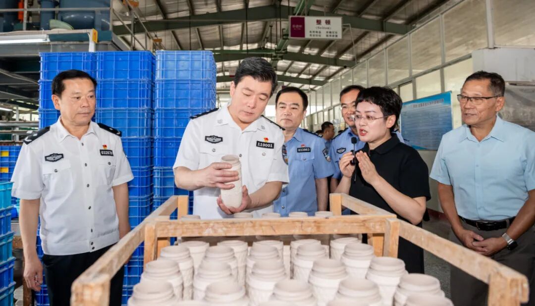 在山东北钛河陶瓷有限公司,朱清彬现场观摩了企业生产情况,并与企业负责人和外籍员工座谈交流,了解企业运营情况和外籍员工在枣工作生活情况,征求对公安机关管理服务工作的意见建议。