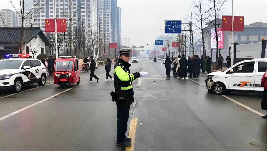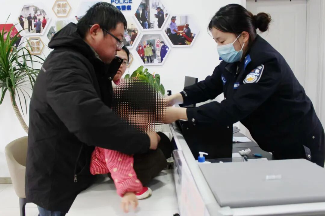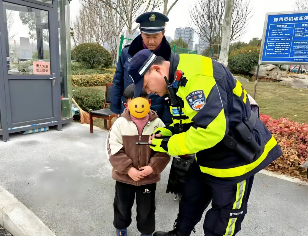 ▲2月1日正月初四,在滕州市北辛植物园,滕州市局交警大队特勤中队执勤队员帮助一走失儿童找到家人,得到群众点赞。