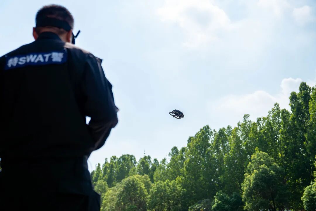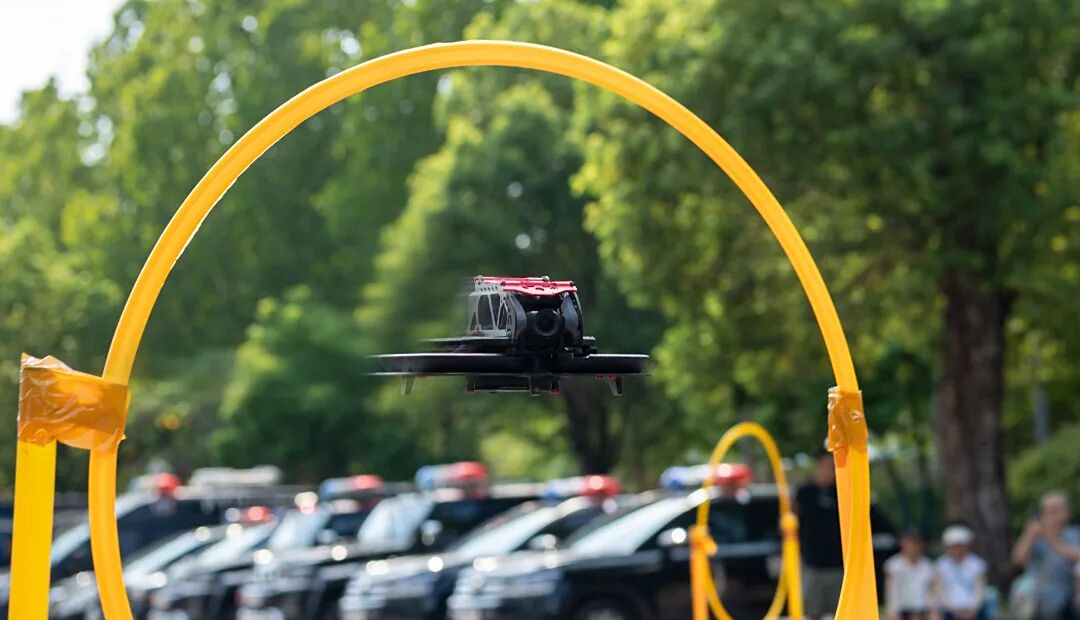 特警飞手熟练地操作穿越机穿越障碍、花式飞行,大家惊叹连连:原来警用无人机还有这么多功能。