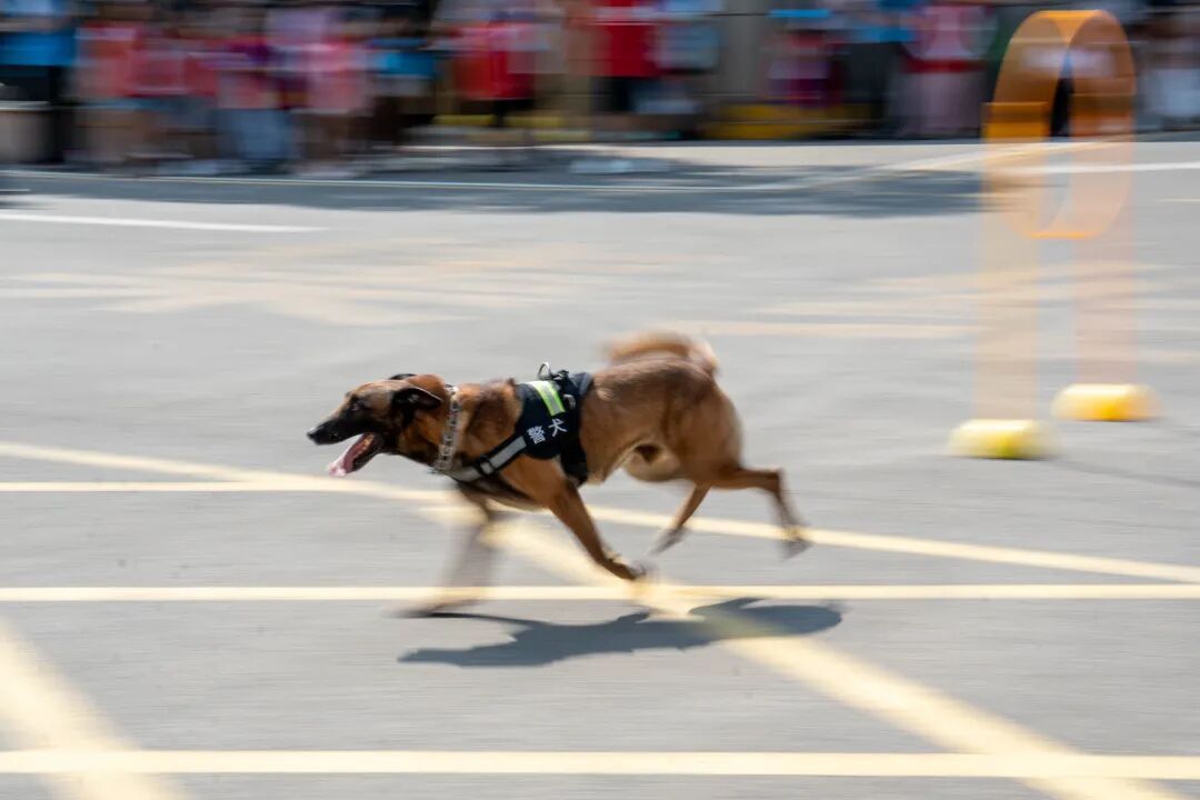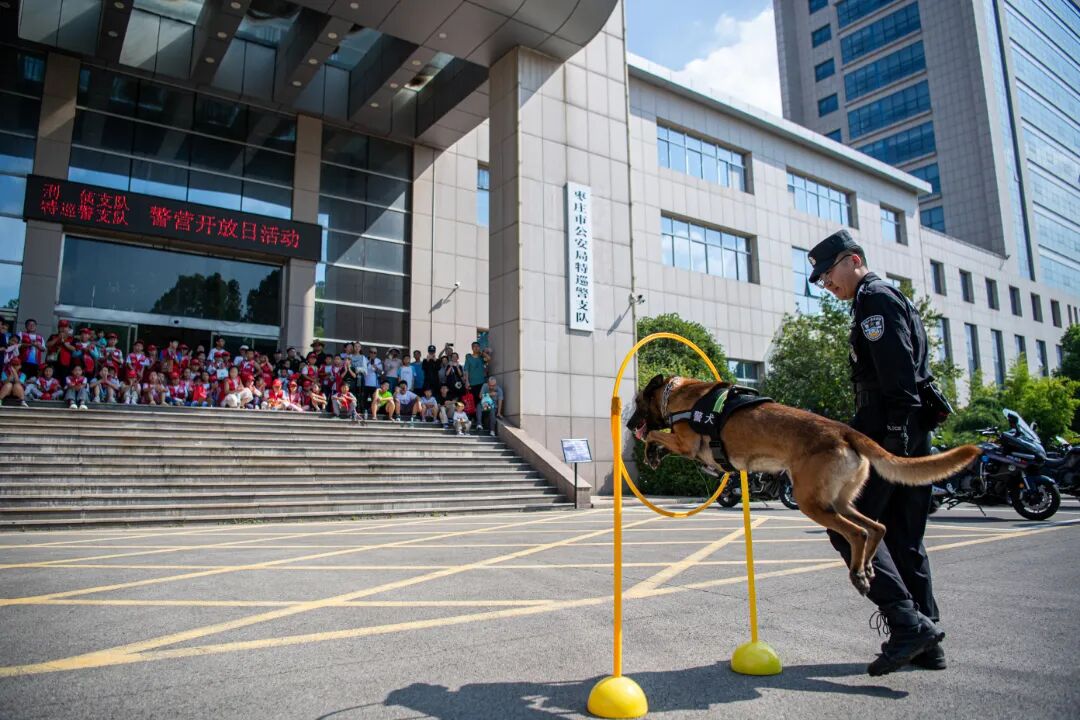 最让大家欢呼雀跃的是警犬表演,警犬在训导员的指挥下先后完成“令行禁止”“迅猛扑咬”等课目,现场氛围被推向高潮。
