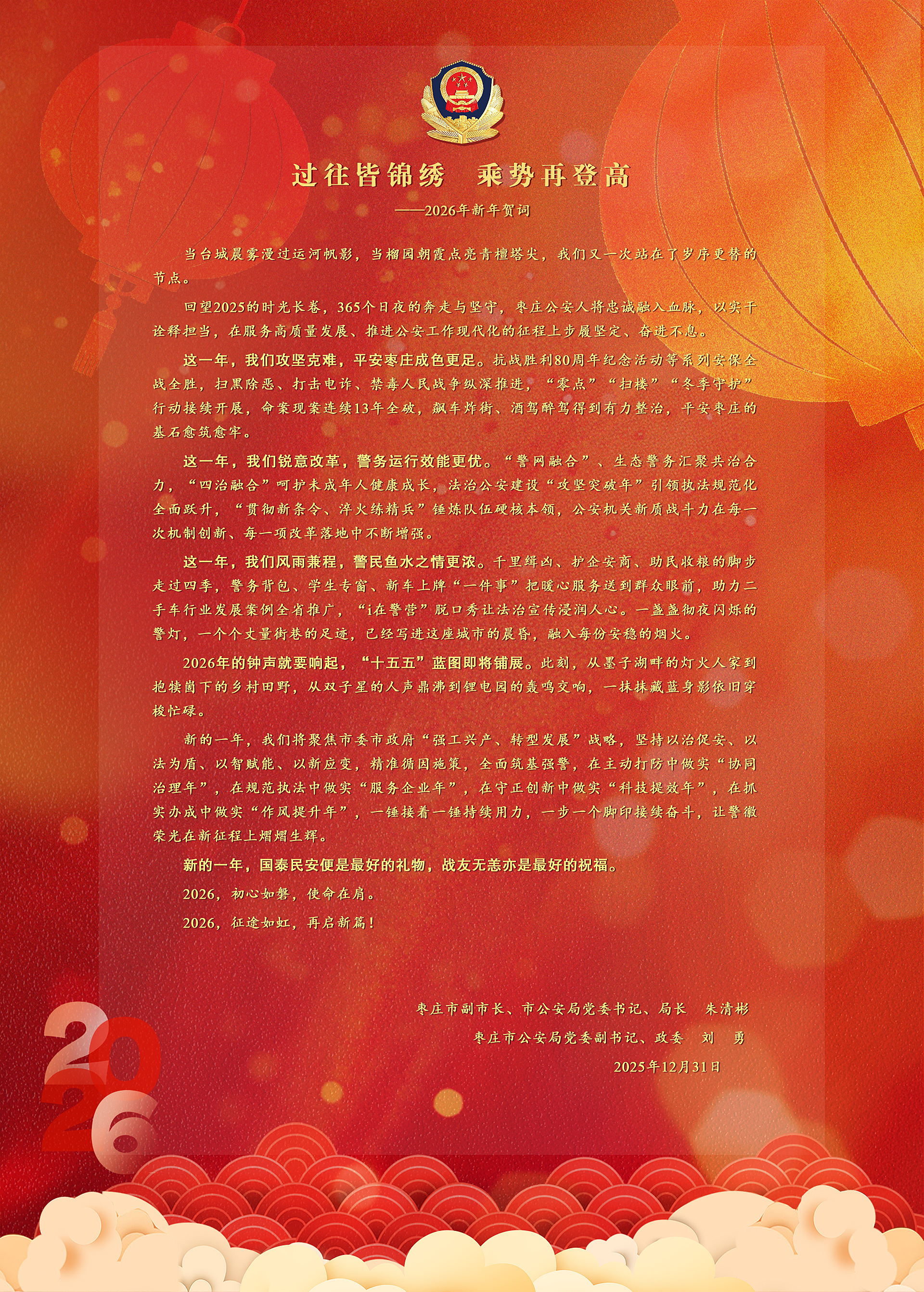 枣庄公安2026年新年献词 | 过往皆锦绣 乘势再登高