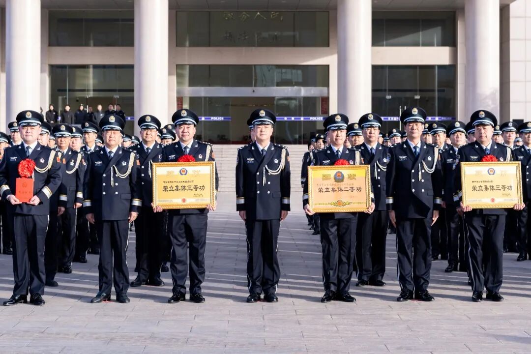 授奖仪式上,市公安局领导为获奖民警代表授奖并合影留念,勉励他们珍惜荣誉、再接再厉,号召全市公安机关和广大民警辅警以先进为榜样,忠诚履职、奋勇争先。