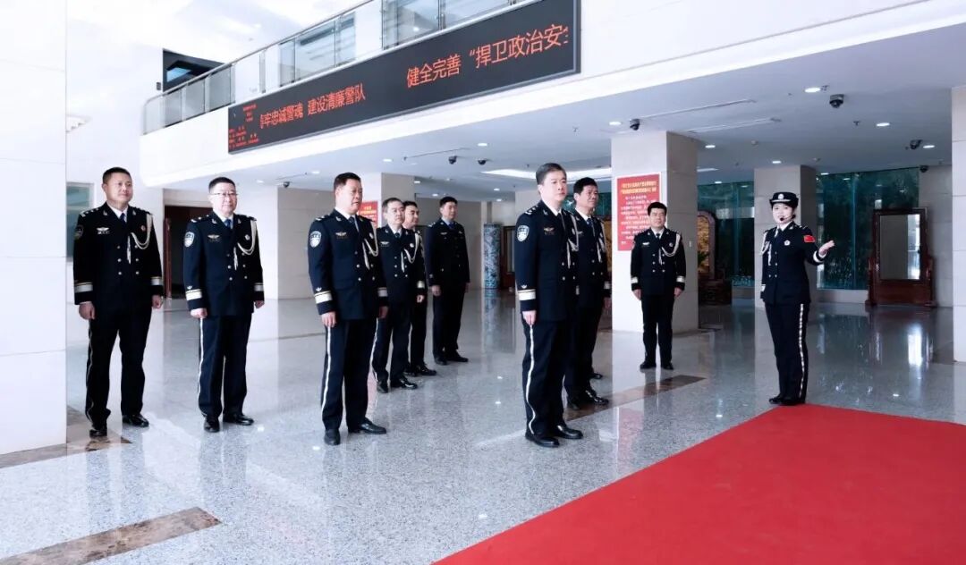 上午8时20分,庄严的升警旗仪式正式开始。护旗手精神抖擞、步伐铿锵,护卫中国人民警察警旗行进至旗杆前。伴随着雄壮的《中国人民警察警歌》,警旗冉冉升起,全体民警面向警旗庄严敬礼,致以最崇高的敬意。随后,全体民警举起右拳,重温了《公安机关人民警察誓词》,铮铮誓言掷地有声,既是对初心使命的庄严承诺,更是对党和国家的绝对忠诚。