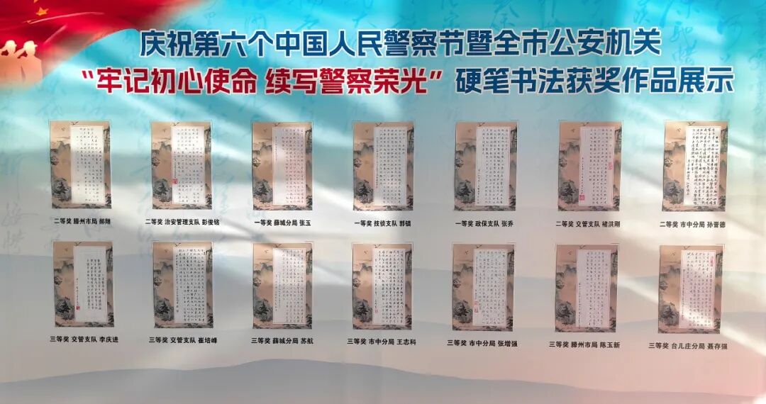 观摩全市公安机关“牢记初心使命 续写警察荣光”硬笔书法获奖作品