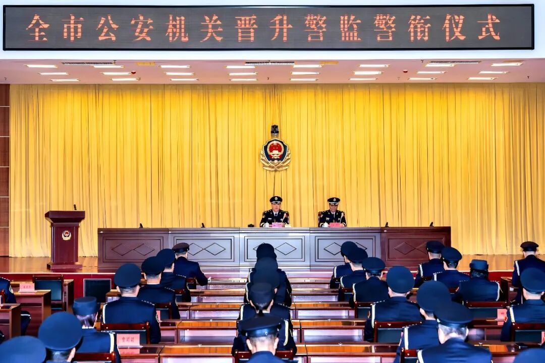 为进一步强化警察职业荣誉感和责任感,举行全市公安机关晋升警监警衔仪式。仪式在庄严的国歌声中拉开帷幕,朱清彬逐一为晋升警监的民警颁发授衔命令证书。活动在《中国人民警察警歌》中圆满结束。