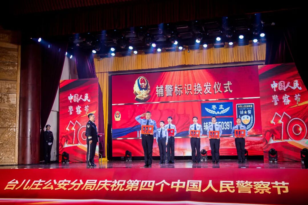 台儿庄分局举行庆祝第四个中国人民警察节暨民警荣休、新警入警、辅警标识换发仪式,朱清彬出席并颁发纪念盘