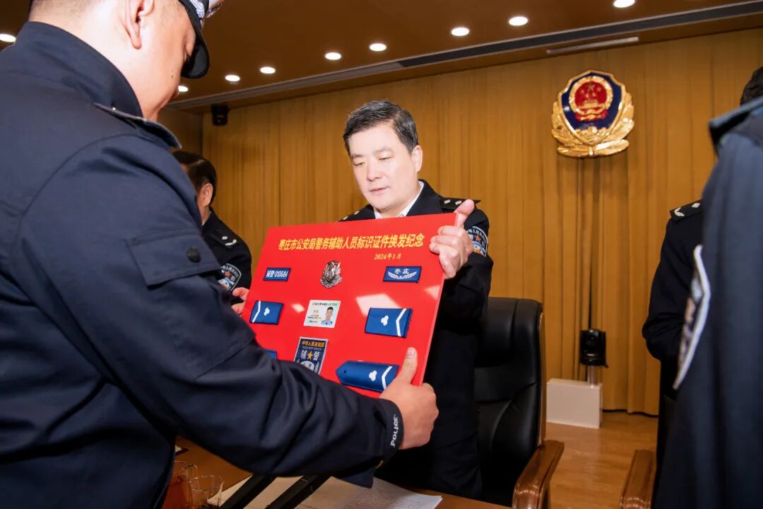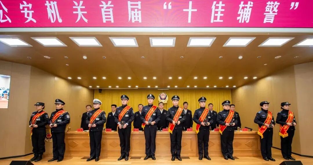 1月17日,市公安局举行全市公安机关首届“十佳辅警”颁奖仪式,副市长、市公安局党委书记、局长朱清彬,市公安局党委副书记、政委刘勇,市公安局领导李杰、杜茂广、訾晋中、徐枫、宁伟为获奖辅警颁奖,并为全市辅警队伍换发服装标识证件。