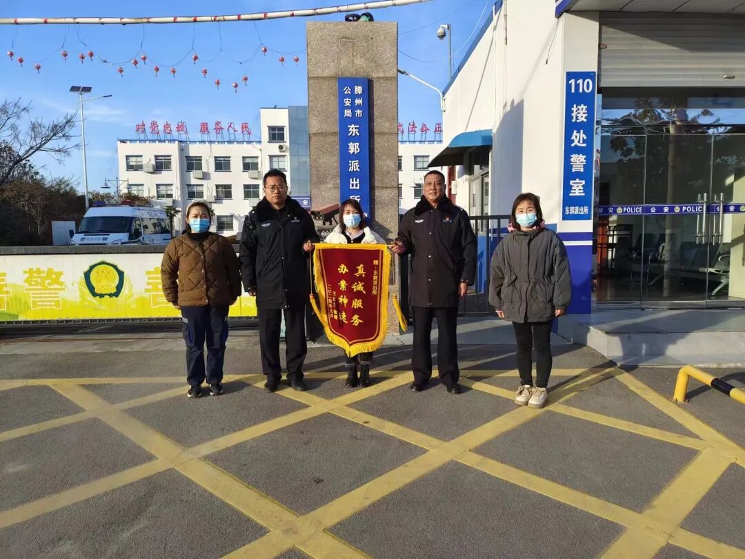 “民警同志,实在太感谢你们了,要不然这些加油钱就得我自己掏腰包了!”1月22日,滕州市东郭镇一加油站工作人员将一面崭新的锦旗送到滕州市公安局东郭派出所民警手中,对民警办事高效、热情服务表示感谢。