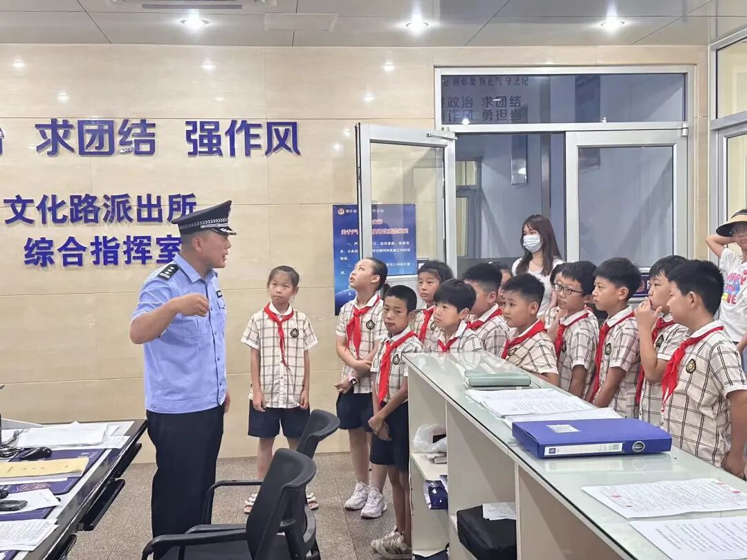 为进一步增强群众对公安工作的理解和支持,促进公安工作的改进和提升,8月15日,文化路派出所开展警营开放日活动,邀请辖区文化路小学师生走进派出所,“零距离”感受警营文化,体验警营生活。