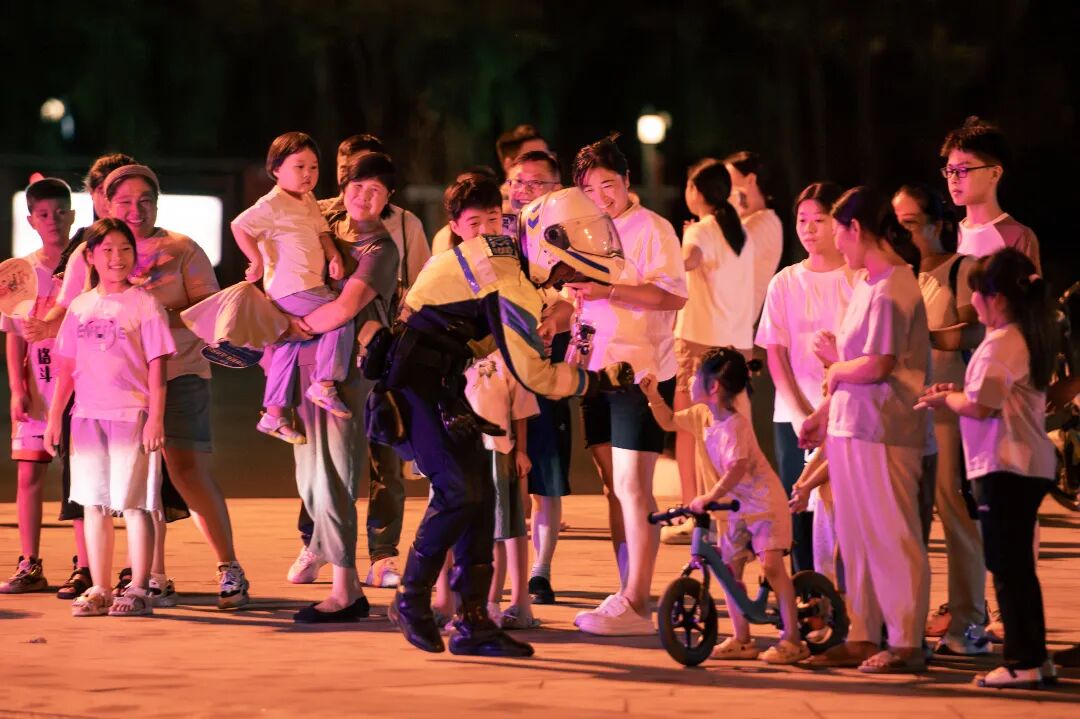 ▲“妈妈,快帮我拍张照。”小朋友们轮流坐上威风凛凛的铁骑,体验了一回当小铁骑的感觉。