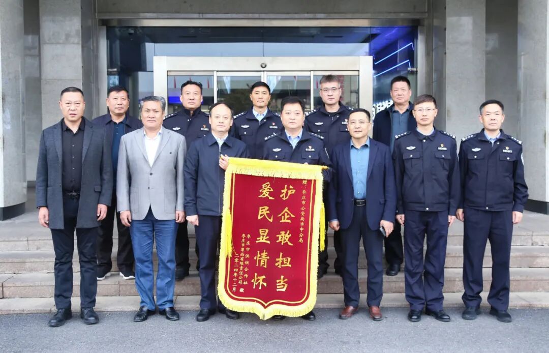 12月12日,枣庄市供销社党组书记、理事会主任李晓东一行专程将一面印有“护企敢担当,爱民显情怀”的锦旗赠送给市中分局,对公安机关成功侦破案件、维护企业合法权益表示感谢。