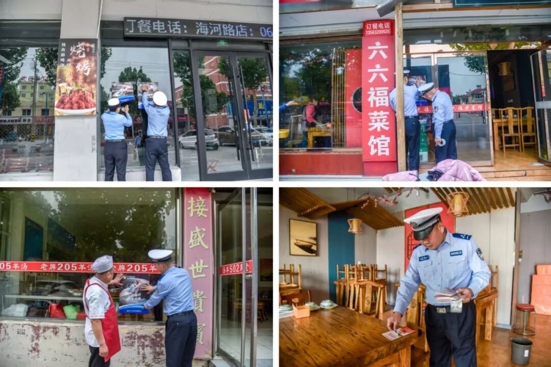 民警深入餐饮娱乐场所开展"拒绝酒驾"主题宣传:张贴警示海报、发放宣传手册、开展面对面宣讲,从源头预防酒驾违法行为发生。