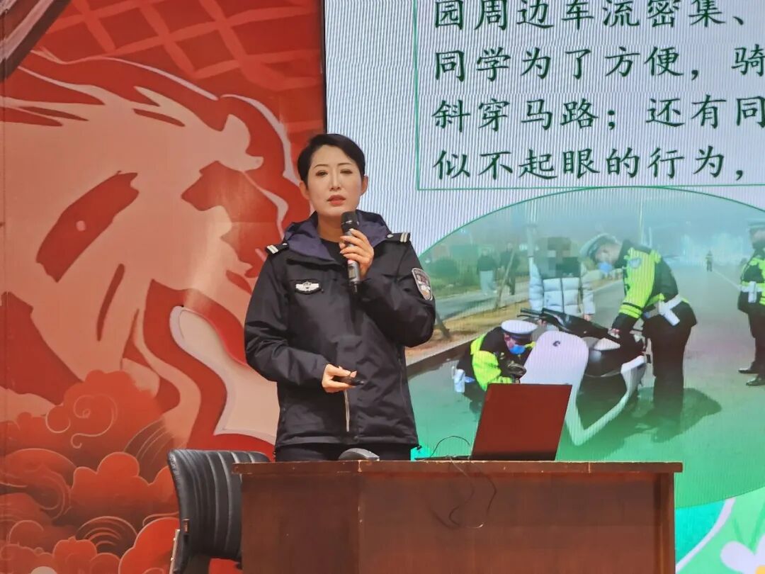 民警通过PPT课件、典型交通事故视频、互动问答等形式,向学生们讲解了交通安全知识。着重强调了在骑电动自行车路上追逐打闹、随意横穿、闯红灯、佩戴安全头盔等行为的严重危害性。并以互动问答的方式,向学生们解答相关交通安全法规知识,传递“一盔一带”安全理念,切实提高学生的交通安全意识和自我保护能力。