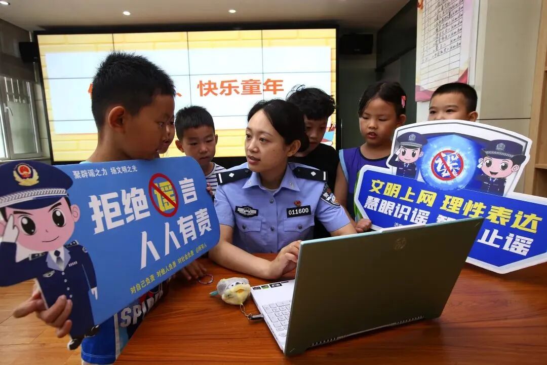 △7月17日,山东省济南市公安局市中分局大观园派出所民警来到睦和苑社区暑期公益托管班,开展主题为“安全上网 护苗成长”的网络安全教育,守护未成年人身心健康。郝新城 摄