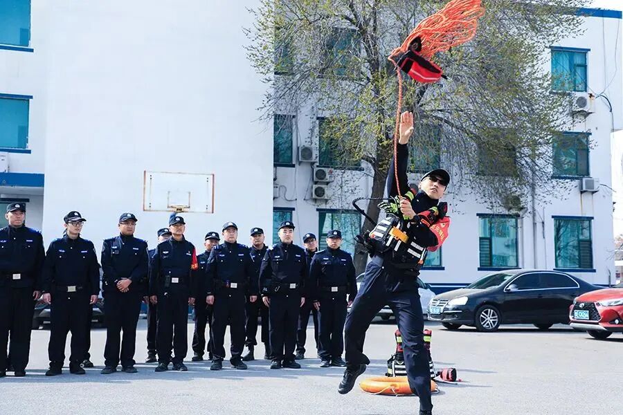 △4月1日,山东省东营市公安局东营分局利用碎片化时间开展所队“小练兵”,围绕突发警情展开模拟演练。袁波 摄