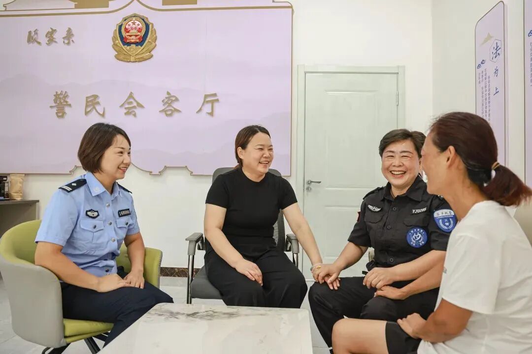 △8月1日,山东省冠县公安局崇文派出所民警与“梨乡枫警”一起调节矛盾纠纷。宋国毅 摄