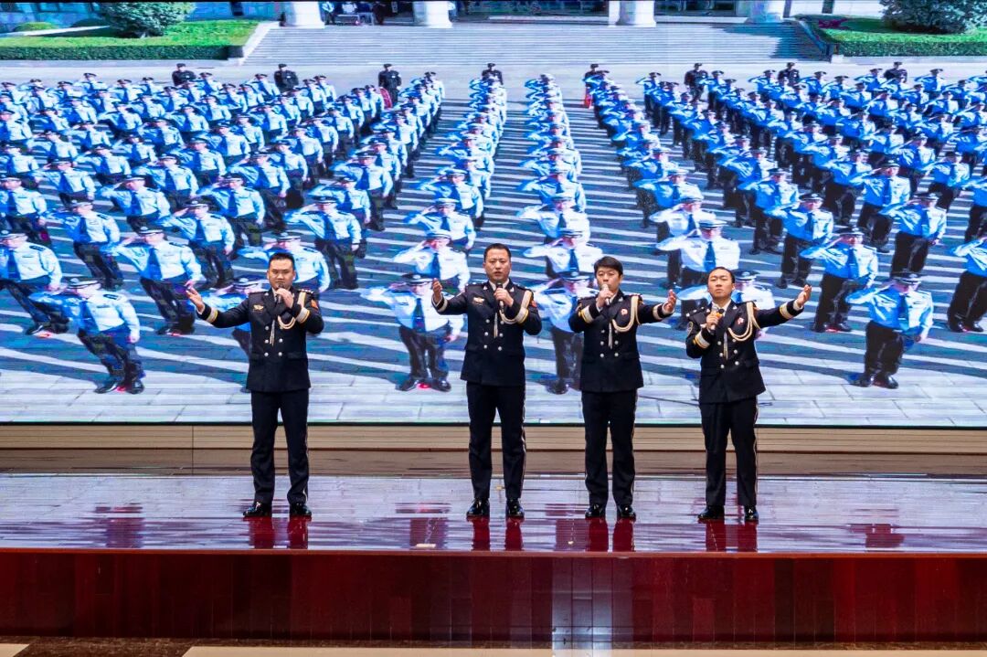 民警现场演唱电视剧《我是刑警》片尾曲《少年壮志不言愁》,抒发了人民警察不畏艰难、勇于担当的精神。