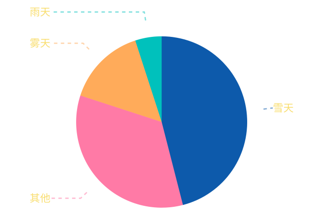 从近5年全省道路交通事故情况看,春运期间,雪天发生交通事故占全年的42.89%,高于平均水平31.93个百分点;雾天发生交通事故占全年的11.94%,高于平均水平0.99个百分点;雨天发生交通事故占全年的3.18%,低于平均水平7.78个百分点。春运期间,雪天、雾天道路交通事故风险突出。