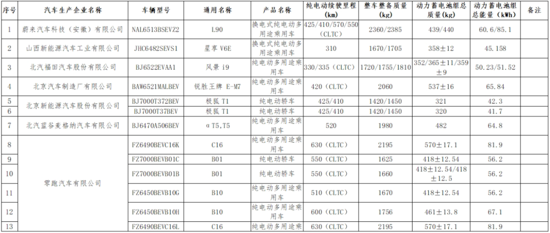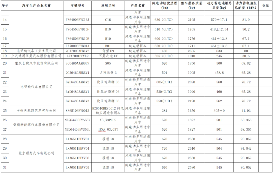 减免车辆购置税的新能源汽车车型目录(第十七批)纯电动汽车—乘用车车型如下: