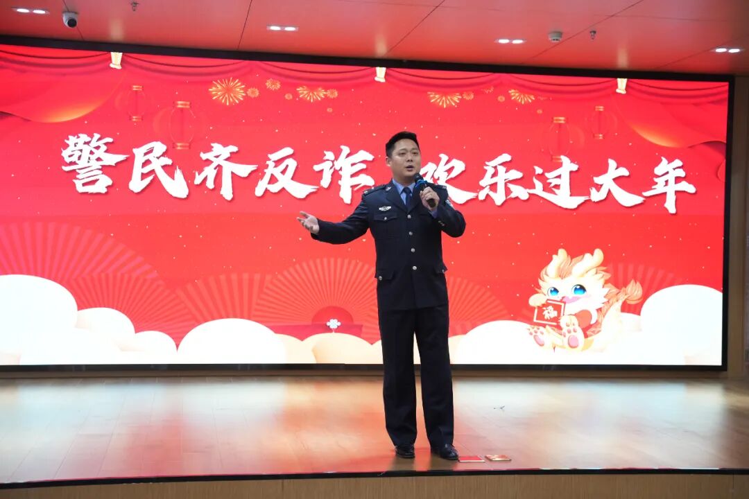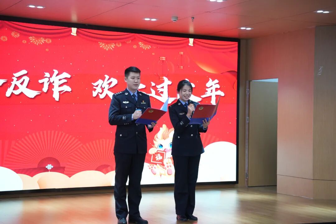 近日,市中分局刑侦大队、宣传科、永安派出所联合泰盈科技有限公司、华林证券公司,举办“警民齐反诈,欢乐过大年”反诈主题联欢会。