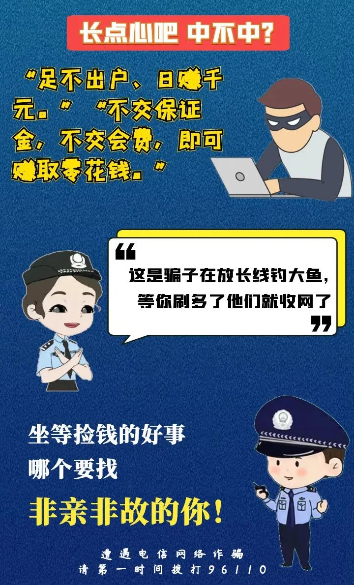 3、如不慎被骗或遇可疑情形,请注意保护证据,立即拨打110报警。