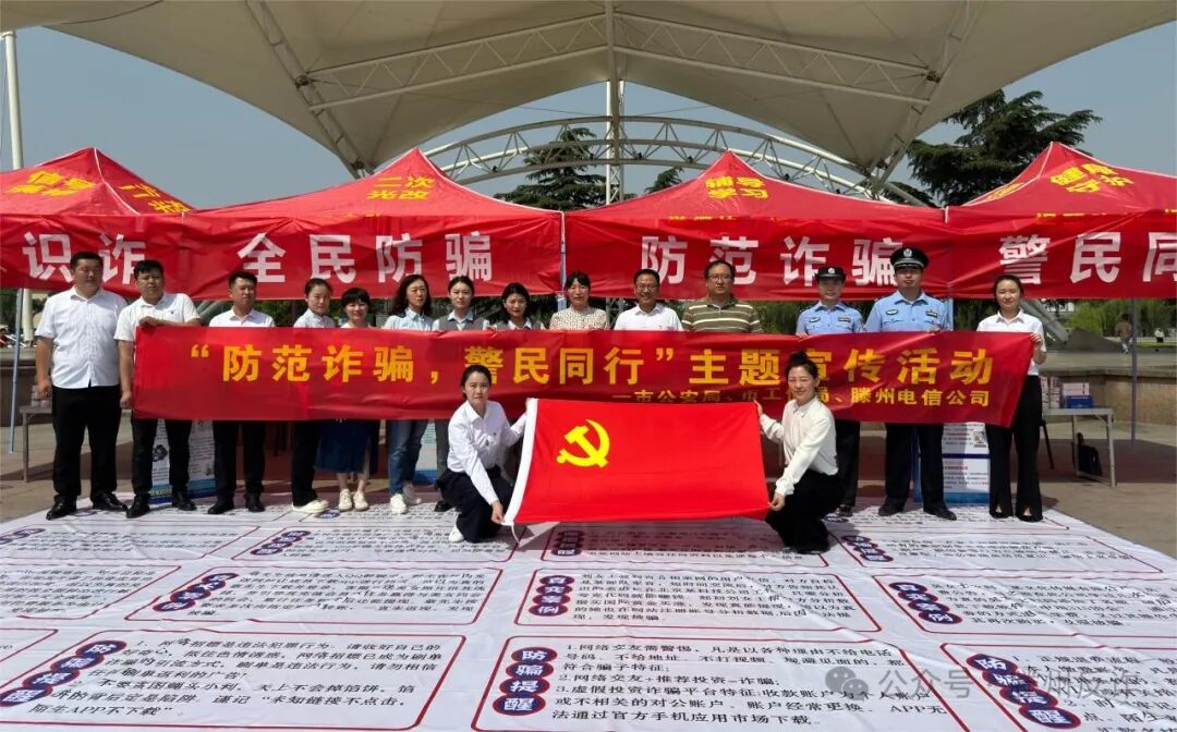 近日,滕州市公安局刑警大队联合市工信局、电信公司开展“防范诈骗、警民同行”主题宣传活动,通过普及反诈知识,提高公众对电信网络诈骗的防范意识和识别能力,有效遏制电信网络诈骗犯罪的发生,保护人民群众的财产安全。