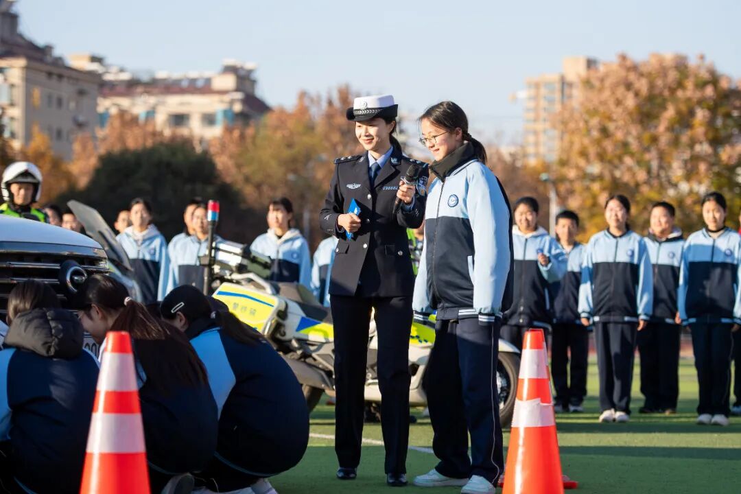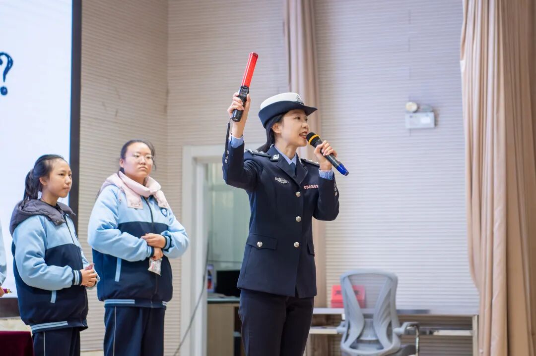 在现场问答、有奖互动环节,同学们踊跃举手、积极抢答。在模拟“酒驾”检测环节,当仪器亮起红灯显示酒精数值时,同学们纷纷发出惊叹。