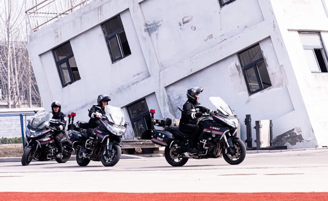 特警车辆整齐列队,引擎轰鸣中,队员们完成队列穿插、蛇形绕桩、高速避障等动作。