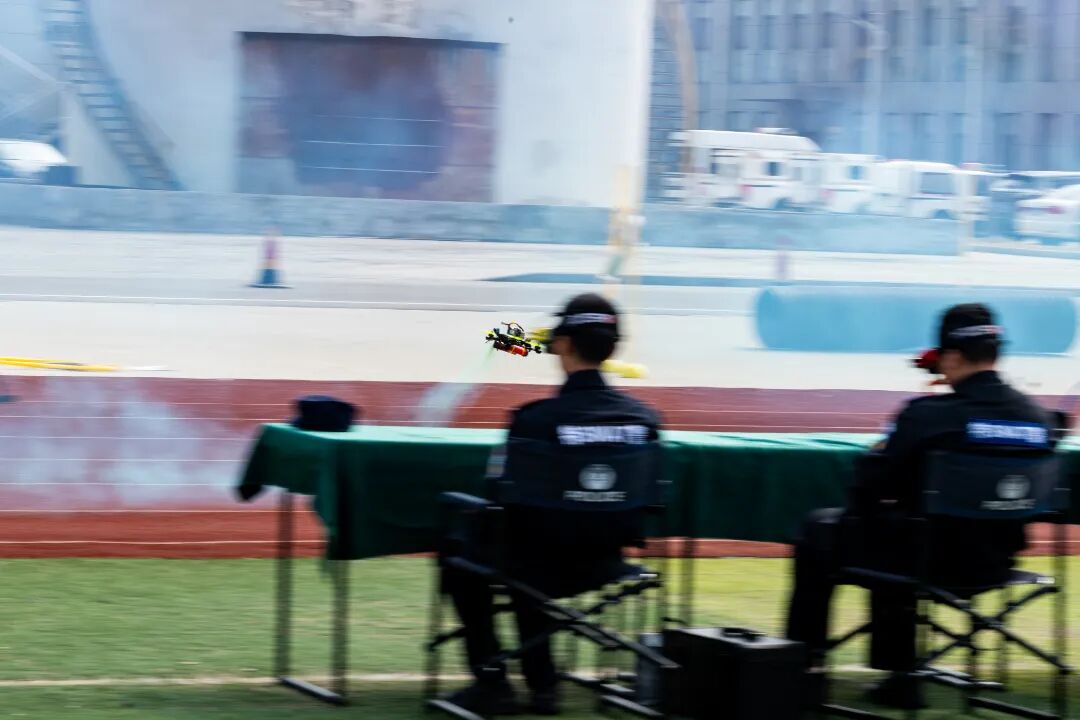 特警无人机闪亮登场,特警队员操控无人机模拟执行追踪、空中侦查、靶向突袭等任务,科技感十足。