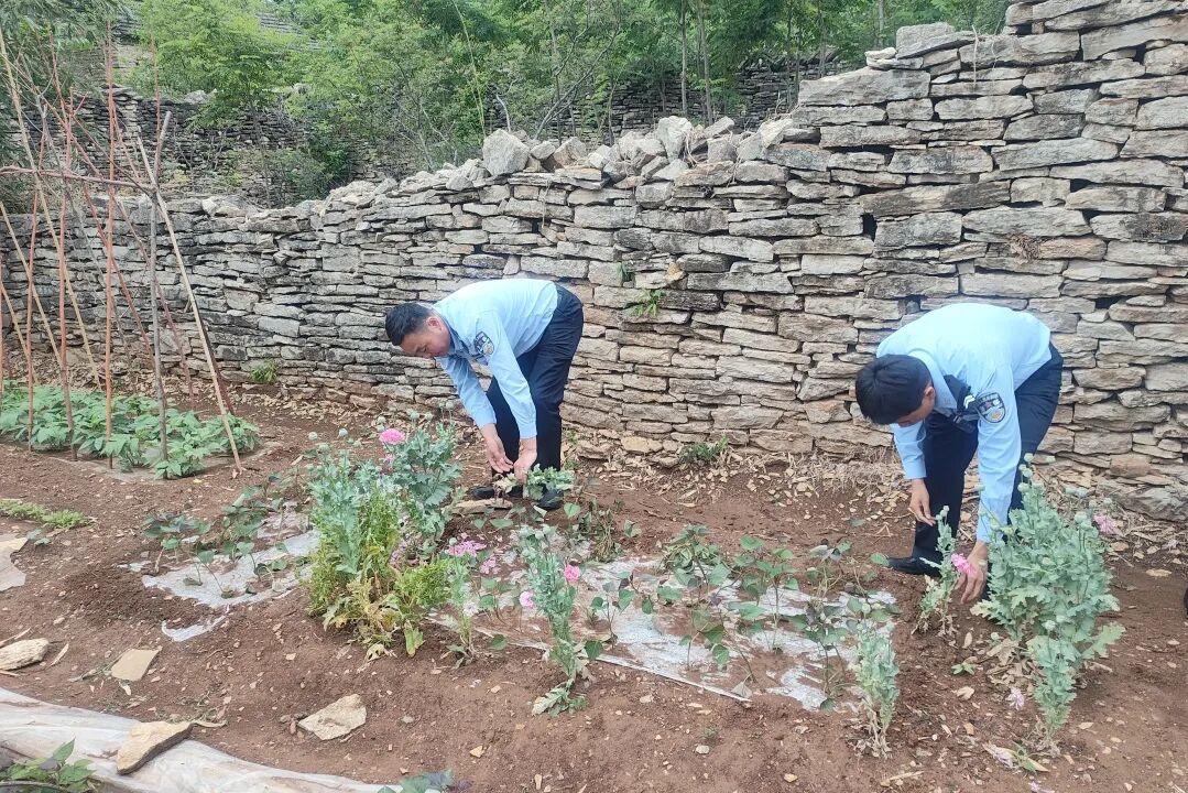 5月6日,枣庄市公安局山亭分局北庄派出所民辅警在巡查过程中,发现村民尹某、陈某、刘某非法种植毒品原植物,当场铲除后,对三人依法予以行政处罚。民警现场向当事人及周边群众普及“种毒违法、种毒必究”的法律知识,强调罂粟对人体和社会的危害。此次行动既消除了毒品源头隐患,也为周边居民敲响了警钟,筑牢了“不敢种、不能种、不想种”的思想防线。