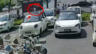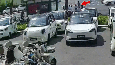 看见警车,犯罪嫌疑人匆忙躲藏在公交站牌后