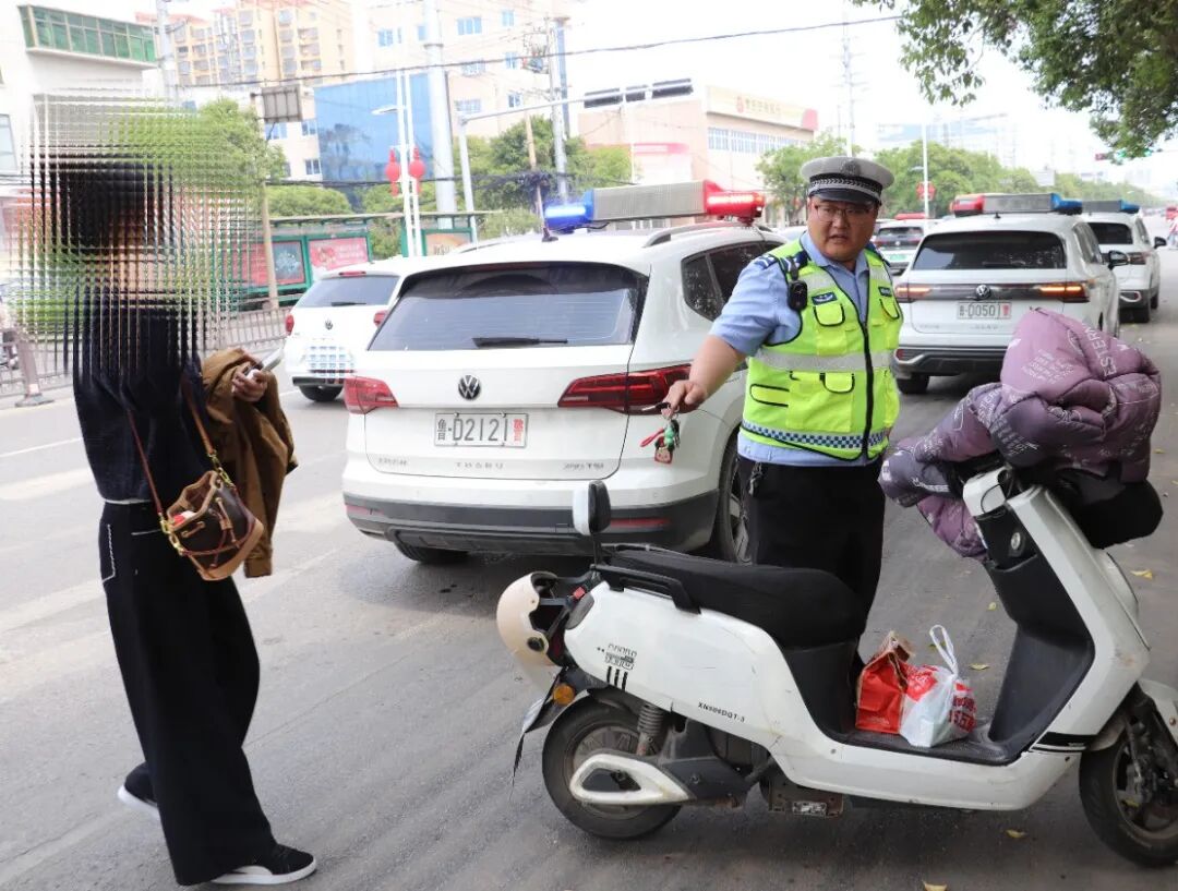 在查处交通违法的同时,联合执法人员结合"一盔一带"守护行动以案说法,向摩托车、电动车驾驶人讲解违法驾乘及乱停乱放行为的危害性,增强驾驶人遵守交通规则的安全意识和文明意识。